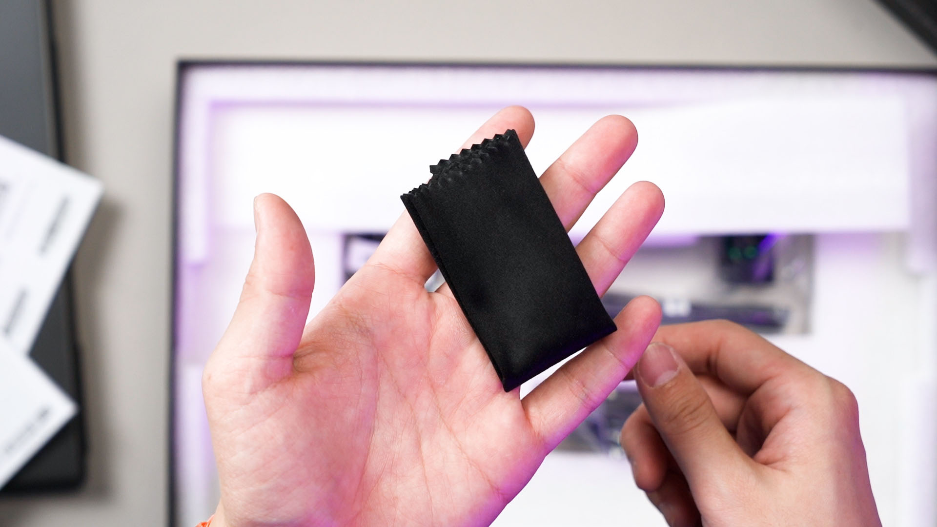 Let’s unbox first. This portable monitor comes with a bunch of accessories inside. We have two USB-C to USB-C cables, one for charging only and another one for the display, a charger, then one USB-A to USB-C, a HDMI to mini HDMI cable, and some cloth to wipe the screen if we need it, and practically, those are the important things.