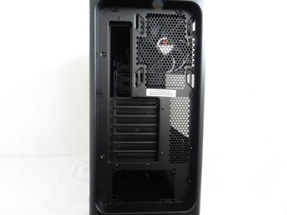 The back of the Shogun is pretty standard with a bottom mounted PSU compartment, seven PCI expansion slots and the ear i/o punch out. Lotsa mesh all around for cooling.