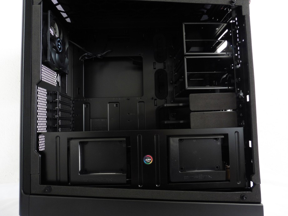 The main chamber is very spacious indeed from here we can see that Bitfenix opted with an SSD display panel as opposed to a PSU shroud, and for good reasons.