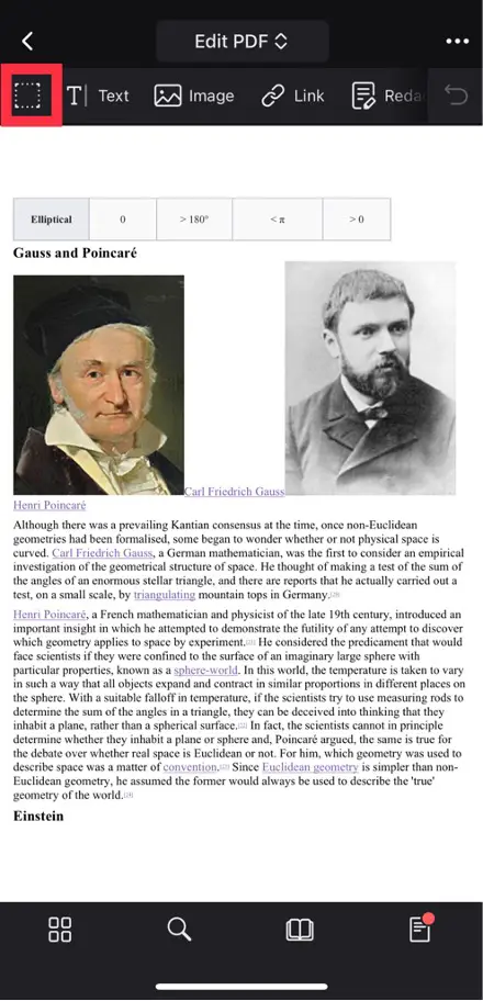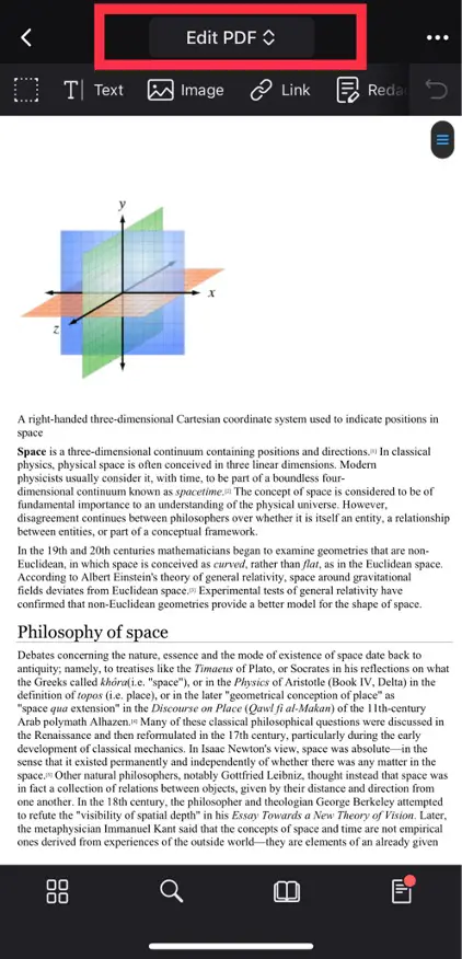 You can add a new textbox to a PDF to customize your edits even more. To do this, once again, you need to open the PDF file on the PDF Expert app and navigate to the toolbar at the top of the screen, where you need to select “Edit PDF.”